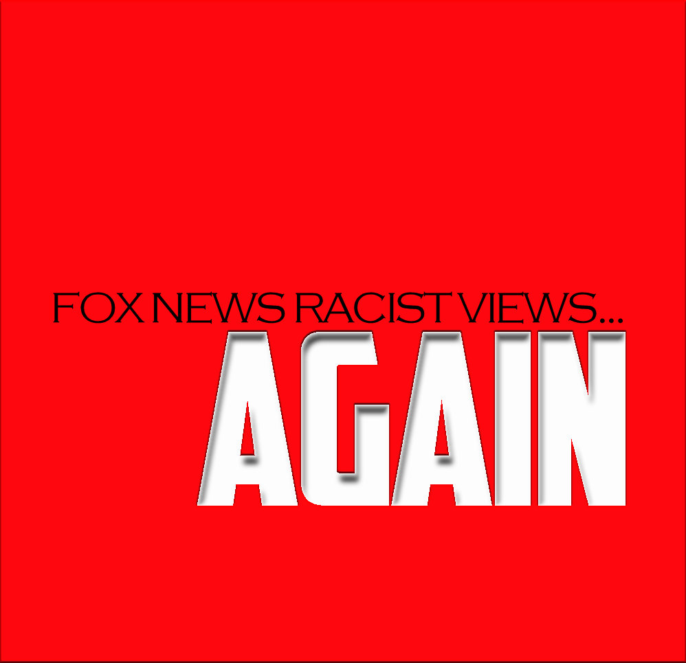 Red square with “Fox News Racist Views… AGAIN” written on the front in black and white.
