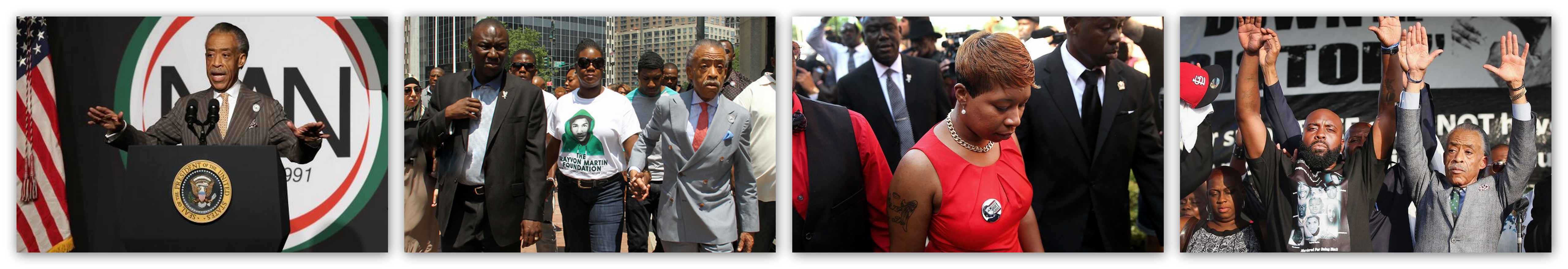 Collage of Al Sharpton with the parents of Mike Brown and Trayvon Martin. (4 pics white background w/shadow)